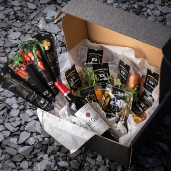 Kinkekast "rikkalik jõululaud" -4,8kg kvaliteetlihatooteid ja kvaliteetvein. (vajab säilitamist külmkapis)